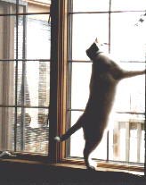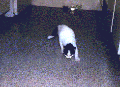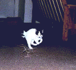 and he's not at all nervous as a cat would be in a room full of rocking chairs. |